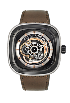 邊個(gè)話手表壹定系方或圓?其實(shí)喺方或圓之間,仲有其他選擇!SevenFriday方中帶圓的設(shè)計(jì),跳脫出傳統(tǒng)腕表的形狀。別樹壹幟的風(fēng)格,展現(xiàn)獨(dú)壹無二的生活哲學(xué)。SevenFriday P-SERIES腕表(Ref: P2B/01)使用了復(fù)古的棕色表帶,黑色、灰色與玫瑰金色的機(jī)械結(jié)構(gòu)層層緊扣,富有濃厚的工業(yè)革命色彩。