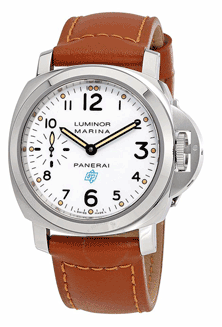 Panerai Luminor手錶簡(jiǎn)潔的白色錶面刻有阿拉伯?dāng)?shù)字,另外更附設(shè)夜光圓點(diǎn),再配上懷舊的棕色小牛皮錶帶,蘊(yùn)含特別的懷舊玩味。